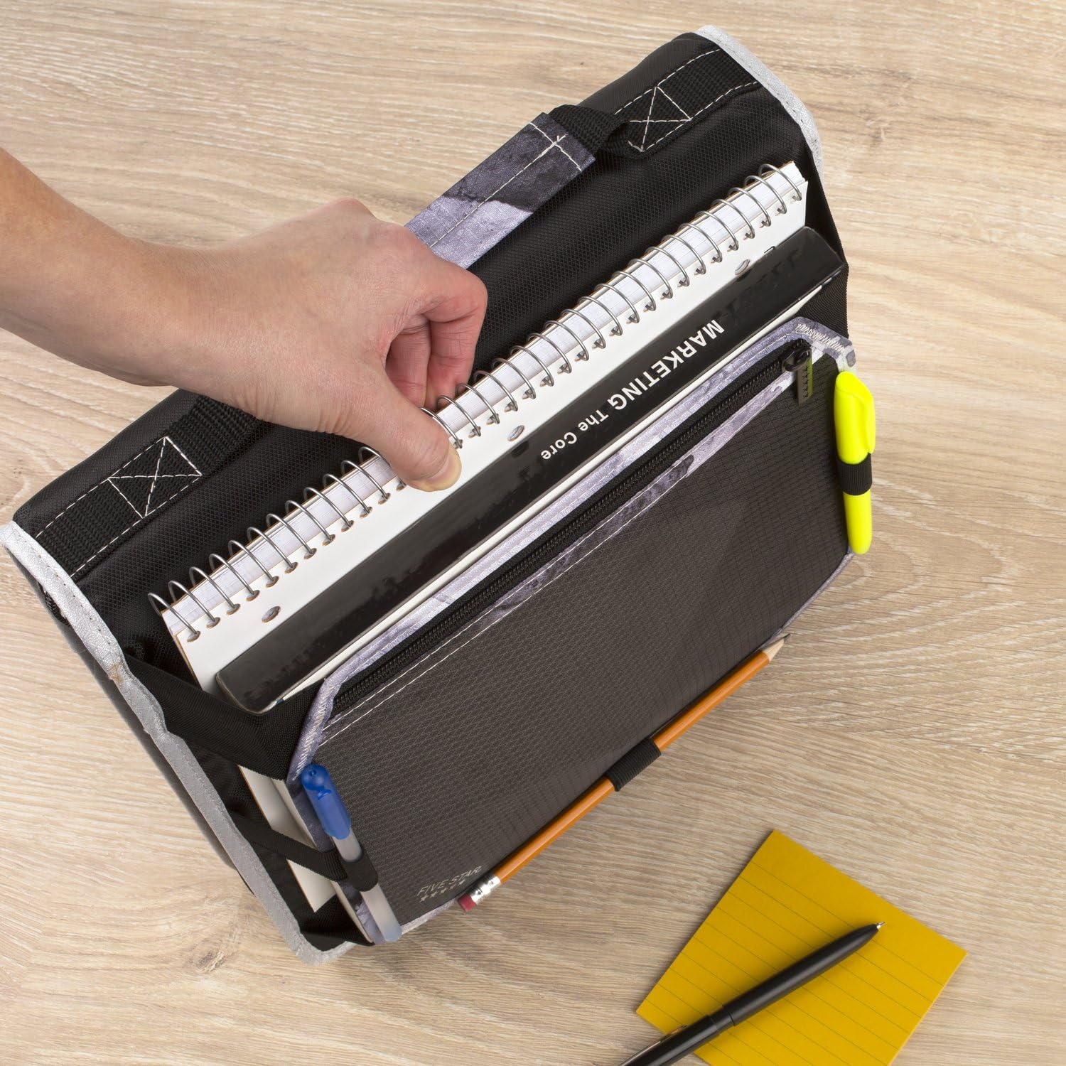 - Expansion panel on the outside of the binder allows you to store and access textbooks, notebooks and more without unzipping the binder